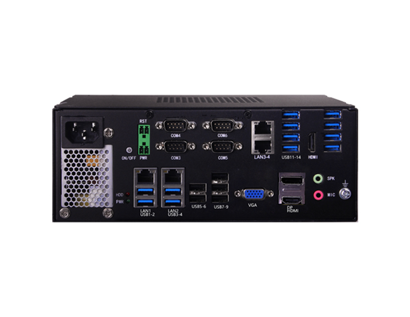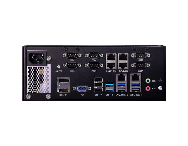 查看產品 對比支持Intel 10代 Core i3/i5/i7/i9 LGA1200處理器,4*LAN,8*USB,5*COM,210mm*230mm*208mm